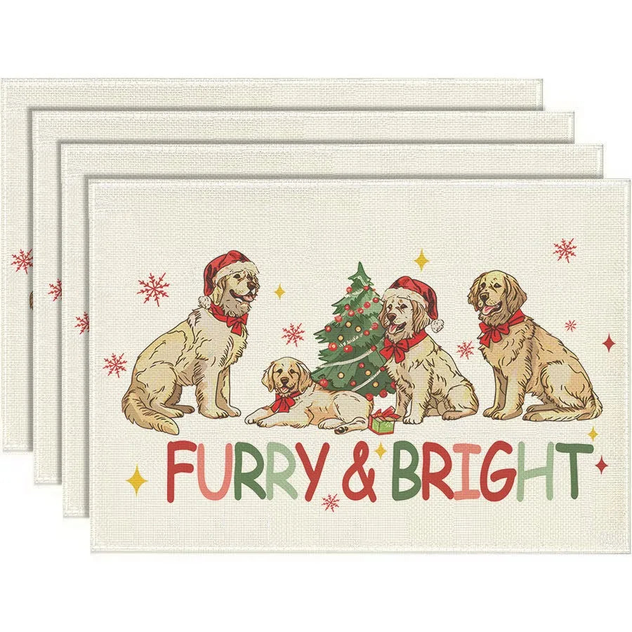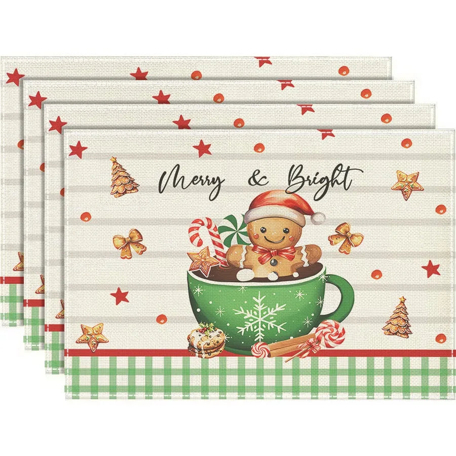 4/6/8Pcs Church Xmas Trees Linen Placemat Snowflakes Merry Christmas Placemats Winter Table Mats for Party Kitchen Dining Decor