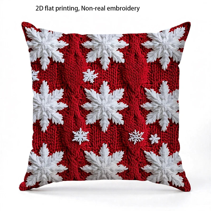 Christmas Red Pillows with Snowflakes and Trees Square polyester pillowcase, modern sofa decorative cushion cover