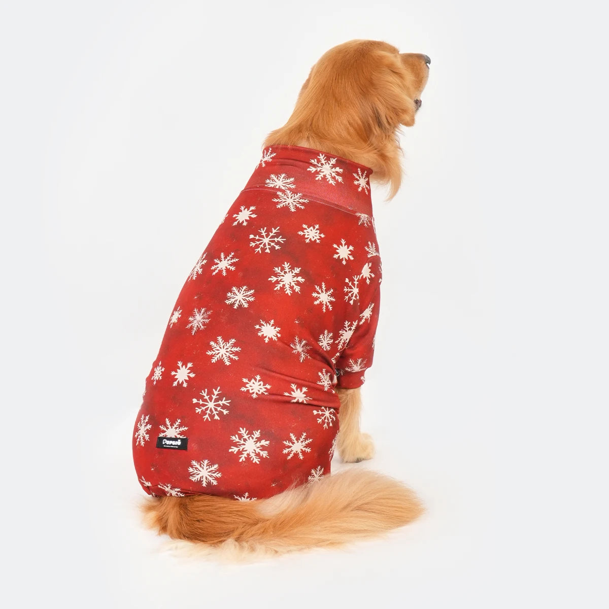 Ultra-Soft Christmas Dog Costume - Size -6XL - Warm Pet Apparel - Red and Snowflake Pattern - Adjustable Dog Clothing